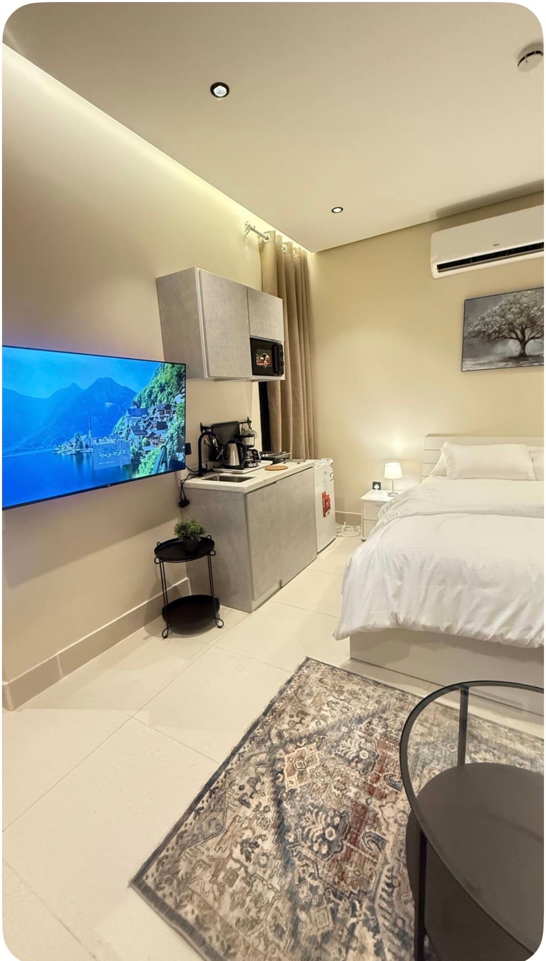 Una lujosa experiencia relajante con vista al agua y jacuzzi privado en el corazón de Khobar. ♥ ️ Te damos la bienvenida a una suite diseñada específicamente para aquellos que buscan tranquilidad y privacidad, Aquí, la serena vista al agua se mezcla con lujosos detalles que te dan una sensación de relajación desde el primer momento. La suite cuenta con un jacuzzi privado que le ofrece una experiencia de bienestar única, una sala de relajación preparada para un ambiente tranquilo lejos de las presiones de la vida, con un diseño moderno para crear un ambiente refinado y relajante. Este lugar es una experiencia perfecta para: • Parejas • Eventos especiales • Quienes buscan privacidad y tranquilidad. • Una escapada lujosa lejos de la rutina diaria.
