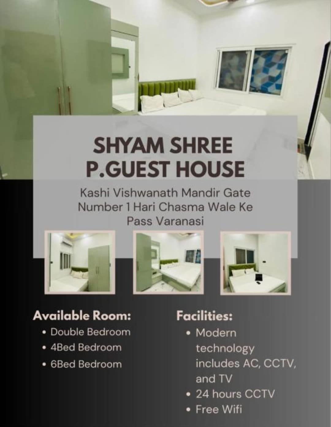 Relax with the whole family at this peaceful place to stay.काशी विश्वनाथ मंदिर से मात्र 120 मीटर की दूरी पर स्थित, हमारा गेस्ट हाउस श्रद्धालुओं और पर्यटकों के लिए एक आदर्श ठहरने की जगह है। सुबह मंदिर की आरती हो या देर रात दर्शन — आप बिना किसी वाहन के मात्र 5 मिनट पैदल चलकर मंदिर पहुँच सकते हैं। यहाँ आपको मिलती है: ✔️ साफ-सुथरे और आरामदायक कमरे ✔️ शांत और सुरक्षित माहौल ✔️ परिवार एवं कपल-फ्रेंडली वातावरण ✔️ 24×7 पानी और बिजली सुविधा ✔️ उचित दाम में बेहतरीन ठहराव काशी यात्रा को यादगार बनाने वाले