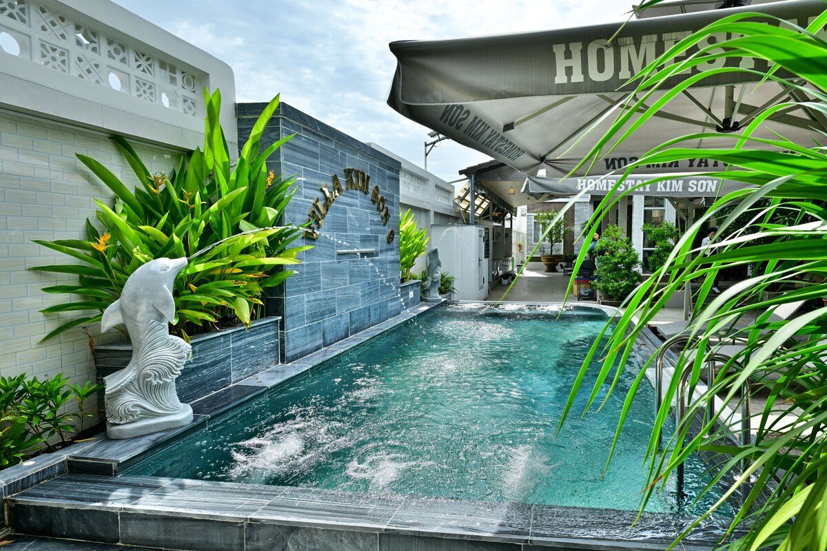 Kim Son Homestay 9 is a private villa near Phuoc Hai Beach, ideal for families and groups of friends. The villa offers a spacious layout with modern design, a private swimming pool, BBQ area, and full amenities. A perfect place for a relaxing, comfortable, and private beach getaway.
