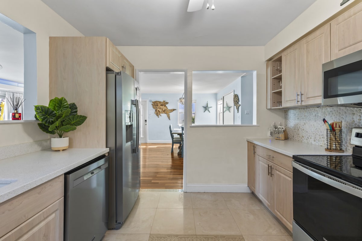 Te damos la bienvenida a Coastal Charm, tu escapada perfecta a la costa de Florida. Este alojamiento de 3 dormitorios y 2 baños, bellamente decorado, puede alojar hasta 7 huéspedes con 2 camas tamaño king, 1 tamaño queen y un sofá cama. TV en todas las habitaciones 10k canales. Disfruta del café y el chocolate caliente que marca la pauta para las mañanas relajadas. Patio completamente vallado, fogata de gas y barbacoa. Explora todo lo que el noreste de Florida tiene para ofrecer. Se admiten mascotas, acceso al garaje y abastecido con todo lo necesario. Coastal Charm no es solo un lugar para hospedarte, es un lugar para exhalar.