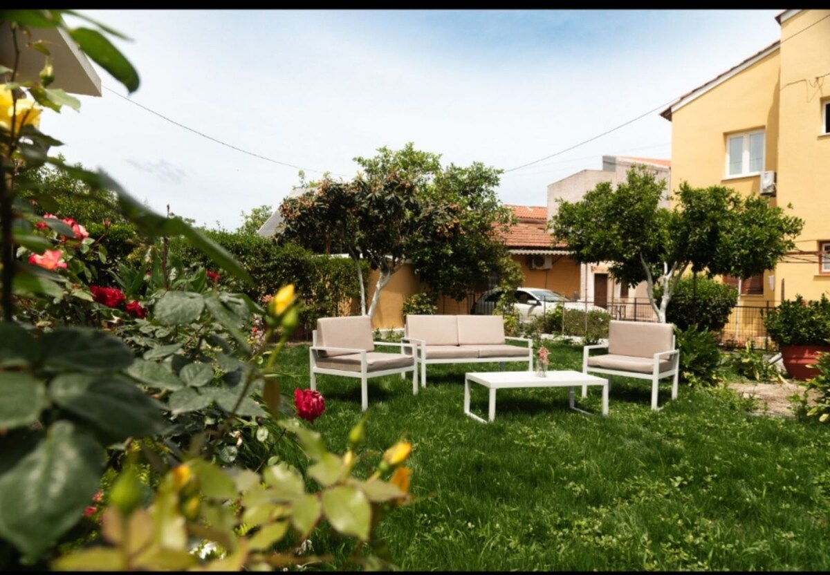 The comfortable Ostrica Family House is located in the south of Corfu, almost next to the sea. It is 50 meters from a quiet beach with private access, shallow, warm waters, ideal for small children. It has a large yard with a garden, for relaxation and activities and an improvised barbecue - grill. 2 free bicycles are provided for beautiful rides in the streets of the traditional Corfu - Lefkimmi olive grove, a short distance from the residence.