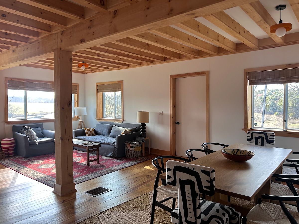 Bienvenido a PostBeamLove. Una idílica escapada privada y aislada de ensueño de 10 acres para 4 estaciones. Alójate y disfruta de una comodidad total en un granero lechero de 1840 totalmente convertido con bañera de hidromasaje de agua salada interior y sauna con vistas a la montaña, con vistas al noroeste de Catskills en el corazón de Roxbury. La propiedad cuenta con un estanque alimentado por manantial, un cenador, un arroyo y una granja vecina. A 10 minutos en coche de Plattekill Mtn, uno de los secretos mejor guardados para los esquiadores ávidos. O practica senderismo, disfruta de un pícnic e incluso juega al golf.