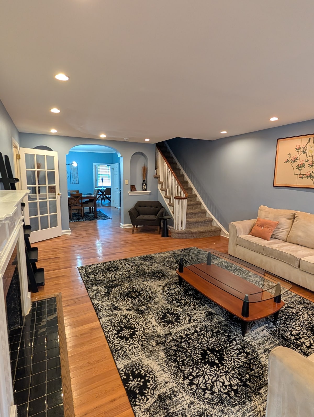 Enjoy relaxing in the spacious and comfortable mid-century modern surroundings of this fabulous town house. Owned by a musician, this cozy home has been renovated to the highest standard, and brings a spa-like retreat to your weekend. Enjoy light-filled rooms, an 86” TV and surround sound system to watch movies, comfortable beds and linens, each space exceptionally cleaned and prepared. Restaurants, shops and amenities all within walking distance, yet located on a quiet one-way street.