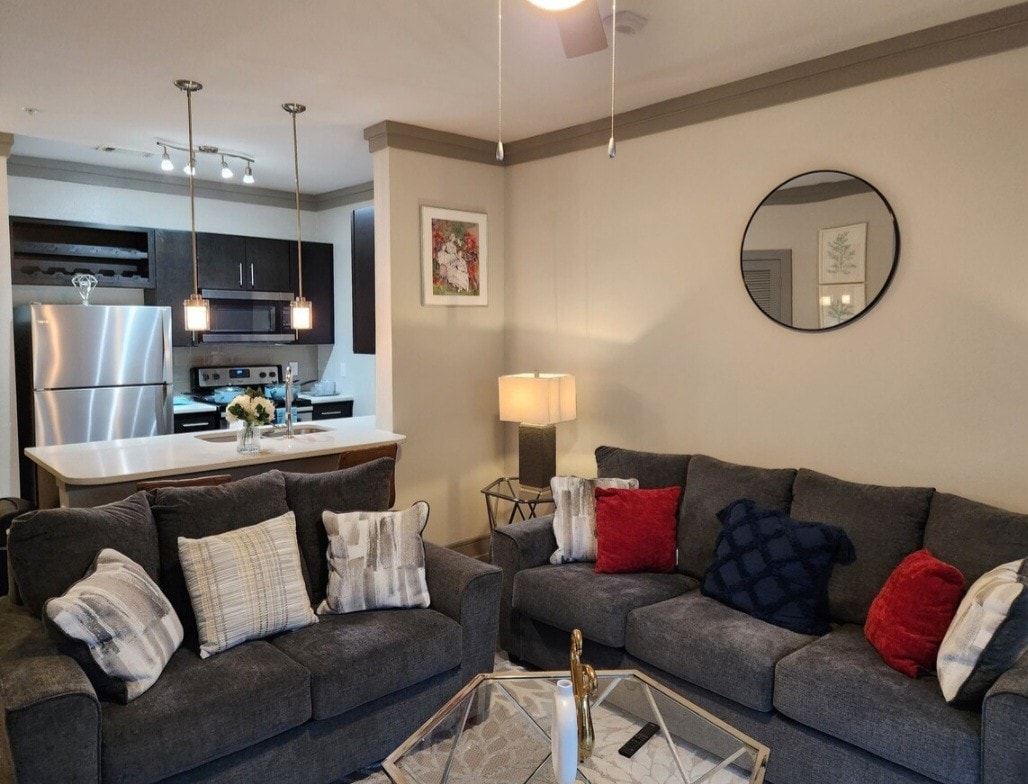 Elegante y cuidadosamente amueblado apartamento de 1 dormitorio (599 pies cuadrados) en el deseable Rayzor Ranch. Este moderno alojamiento cuenta con cocina lista para chef, WiFi ultrarrápido, lavandería en la unidad, estacionamiento gratuito y servicios comunitarios premium como piscina y gimnasio 24/7. Ideal para estadías cortas o largas. Acceso conveniente a la I-35E/380 y a minutos de la Universidad del Norte de Texas, el Hospital Presbiteriano de Salud de Texas y la histórica plaza del centro de Denton con tiendas, restaurantes, música en vivo y cultura.