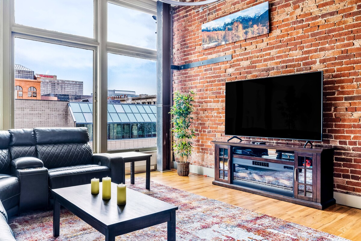 ¡Experimenta un espacio, estilo y comodidad inigualables en este enorme loft de 1200 pies cuadrados en el centro de la ciudad! Con techos de 15 pies, enormes ventanales y ladrillo visto, esta joya cuenta con una cocina remodelada, un lujoso dormitorio en altillo con una cama tamaño king, cortinas opacas y un baño tipo spa. La amplia sala de estar cuenta con un enorme sofá de cuero y un televisor 4K de 86 pulgadas, además de un sofá cama para huéspedes adicionales. A pocos pasos del Centro de Convenciones, restaurantes y más, esta es la mejor vida del centro de la ciudad. ¡Solo echa un vistazo a las reseñas!