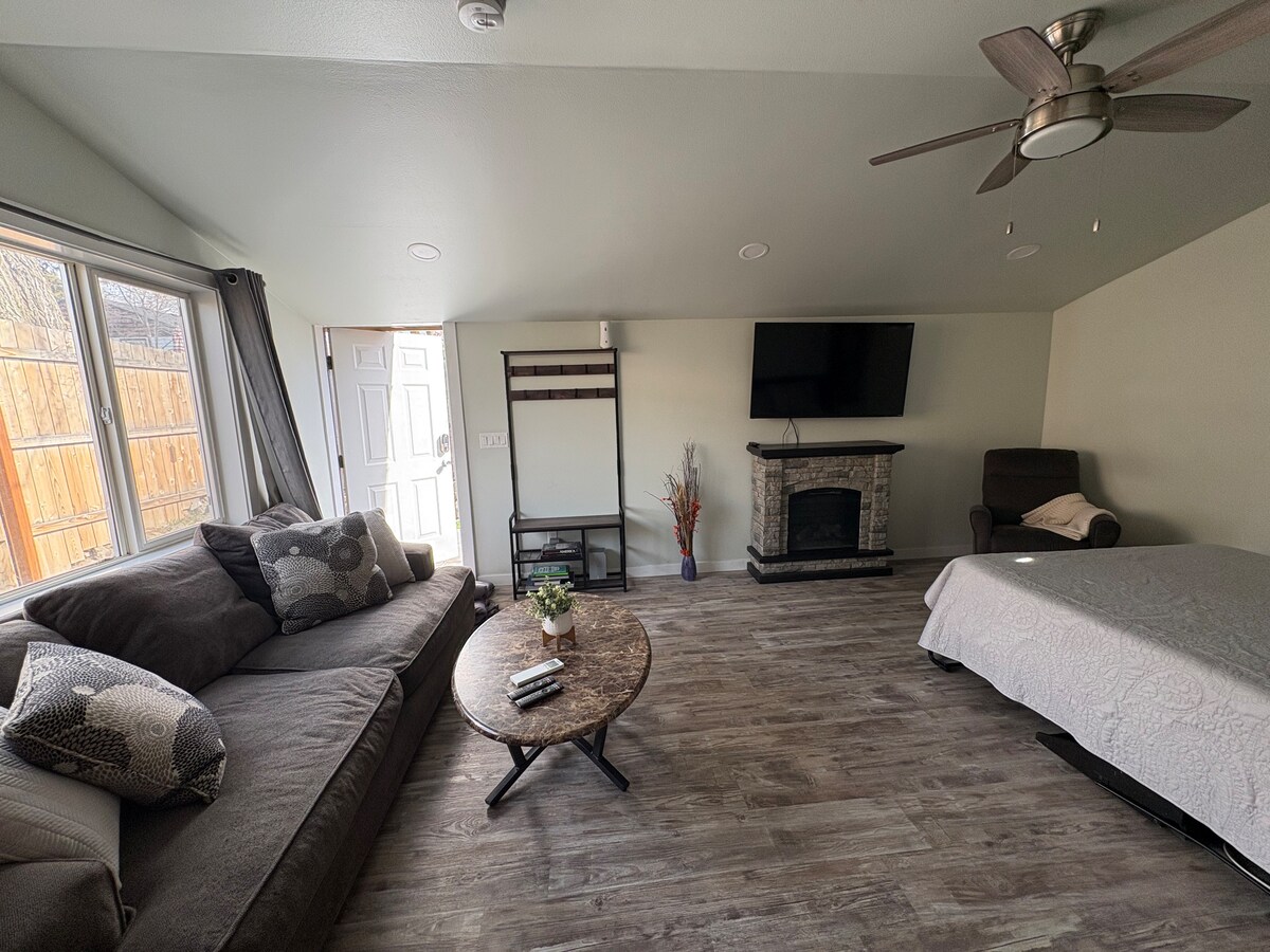 We have a beautiful guest house with tons of natural light and all the amenities you'll need in the best location Bend has to offer. 1 Bedroom, 1 Bath, with a sunroom which can easily be used as a second bedroom whenever needed. The house has a full kitchen with stainless appliances. Best of all, you can't get any closer to Mt. Bachelor, the Deschutes, or Bend's trails. All while still being 8 minutes from downtown Bend.