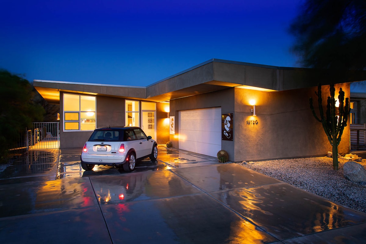 Permiso de alquiler vacacional de la ciudad de DHS: VR22-0046. «Casa del Sol» es una propiedad serena y elegante convenientemente ubicada a 8 millas de Palm Springs y a 35 millas del Parque Nacional Joshua Tree. Esta zona alberga aguas termales minerales naturales y muchos spas. «Casa del Sol» tiene vistas despejadas a la cordillera de San Jacinto y se encuentra junto al desierto abierto. Después de tu día, puedes cenar en el patio y flotar en el agua esmeralda mientras ves cómo el sol pinta el cielo alrededor de las magníficas montañas.
