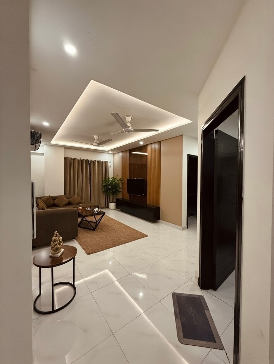 Acogedor Luxe 2BHK • Interior cálido y pared de madera, Lahore