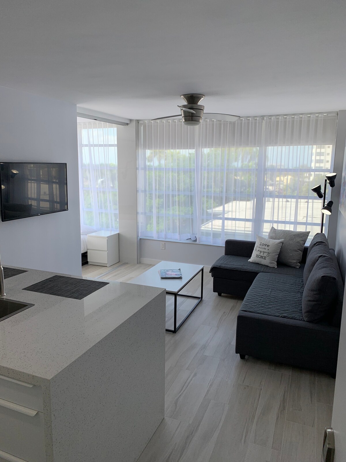 ¡Disfruta de un retiro tranquilo y acogedor en el corazón de Miami Beach! ¡Con un amplio espacio, luz natural, accesorios modernos y tonos cálidos para crear un ambiente acogedor y elevado! → Frente al Centro de Convenciones → Ubicación deseable de Miami Beach. →A poca distancia a pie de la playa → WIFI /TV INTELIGENTE DE 55’ LG → Lavadora y secadora dentro de la unidad → Persianas opacas → Cocina totalmente equipada con juego completo de utensilios de cocina + nevera grande, estufa, microondas y horno Estación de→ Citibike justo afuera del edificio