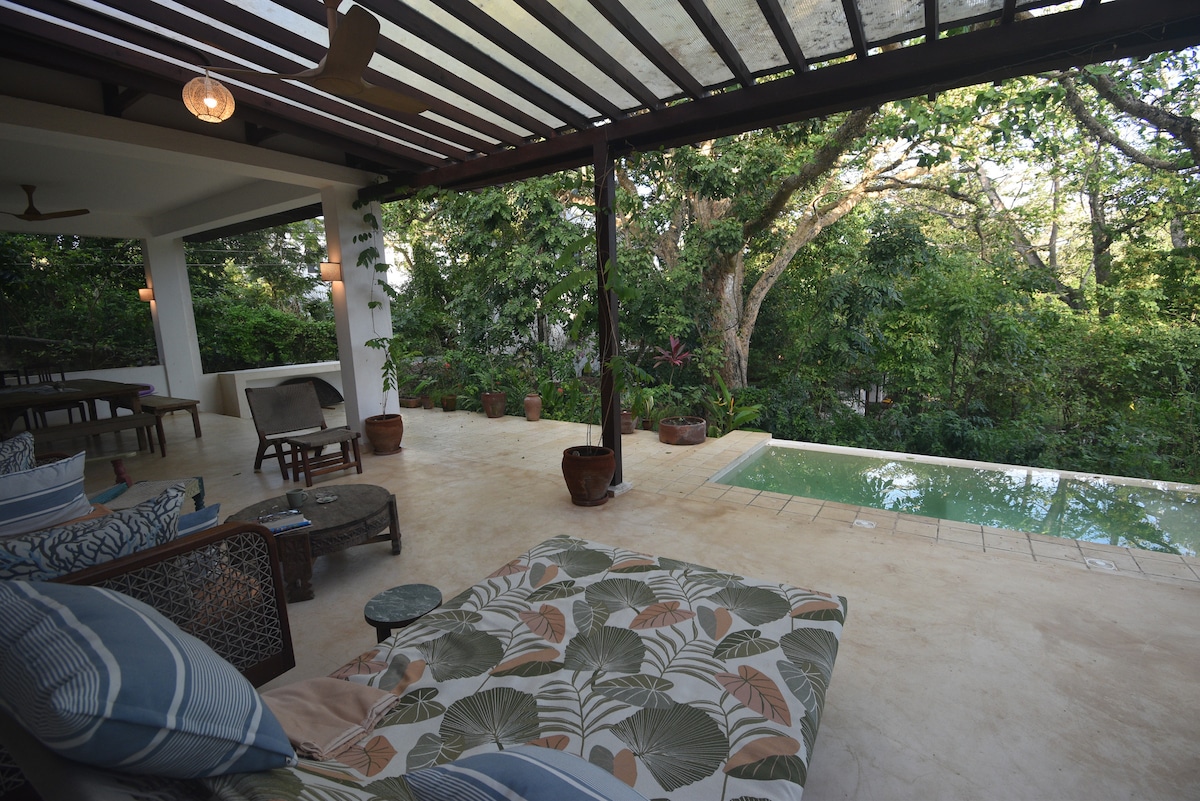 SELF CATERING 3BR Villa with Private Pool in a lush Indigenous Forest 600m from the best stretch of Diani Beach. All rooms are en-suite with private verandas, a pool gazebo, alfresco dining & kitchen bar. Ideal for families, couples, or groups. Relaxing outdoor areas, 24/7 security, and Superhost hospitality from longtime locals. Easy access to beach, forest trails, restaurants & watersports. Private, yet central, a peaceful tropical escape with curated local tips for the best Diani experience.