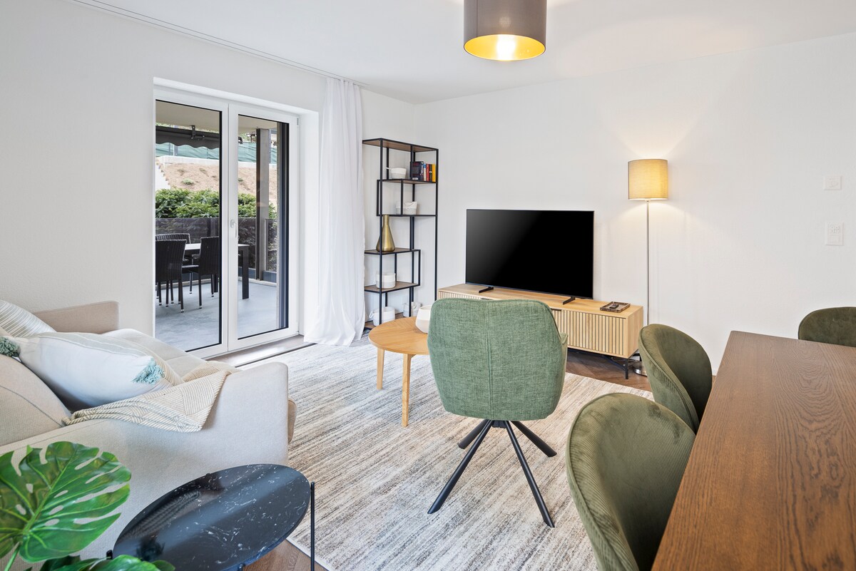 Apartamento luminoso y elegante en Weiningen ZH con balcón, jardín y vista a las viñas. Amplia sala de estar y comedor, cocina moderna, dormitorio acogedor y baño con luz natural. Aire acondicionado, TV inteligente, WiFi, estacionamiento, lavavajillas y lavadora/secadora ofrecen comodidad. Ubicado en una zona tranquila, cerca de viñedos, ideal para paseos y catas de vinos. Zúrich está a solo 20 minutos. Perfecto para días de relax en un entorno idílico.