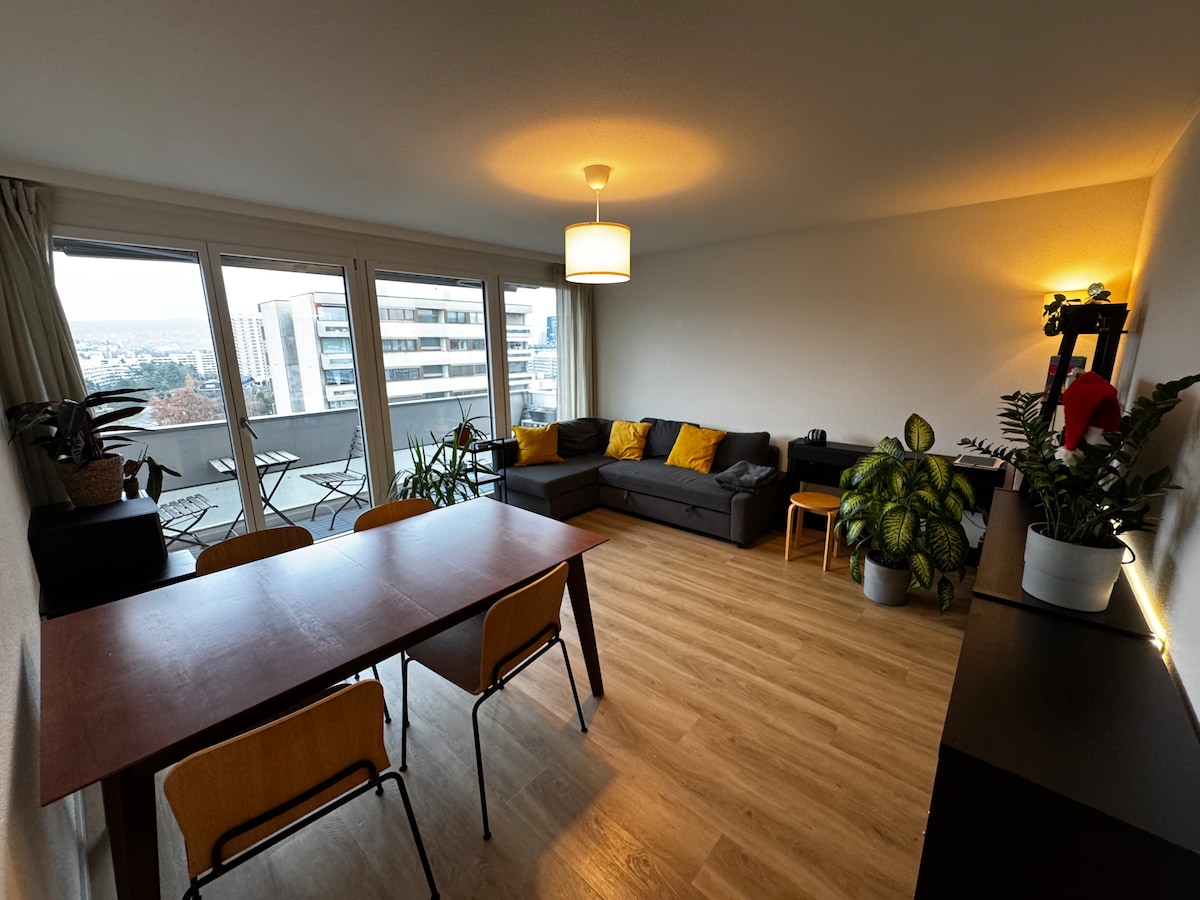 Quiet accommodation near the city of Zurich with a garage parking space on the seventh floor (2 elevators available) with a view into the distance and into the greenery. Zurich main station is reachable by bus and train in less than 30 minutes, Zurich Airport in 40 minutes. From the bus station to the house it's just a 1 minute walk. There are buses every 30 minutes from 05:30 till midnight.