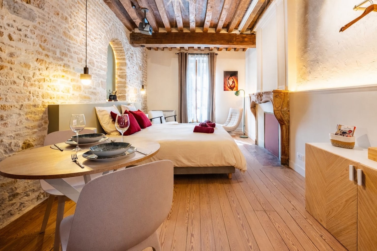En el corazón de la ciudad de los duques de Borgoña, le invitamos a descubrir la suite de Bacchus. Esta antigua panadería y su bodega abovedada, que en su momento sirvió como taller para el artesano, le da la bienvenida ahora en un lujoso loft reformado para una estancia en la capital del vino y la gastronomía de Borgoña. Su céntrica ubicación en la ciudad, cerca de restaurantes, monumentos y transporte público, está dedicada al descanso y la relajación.