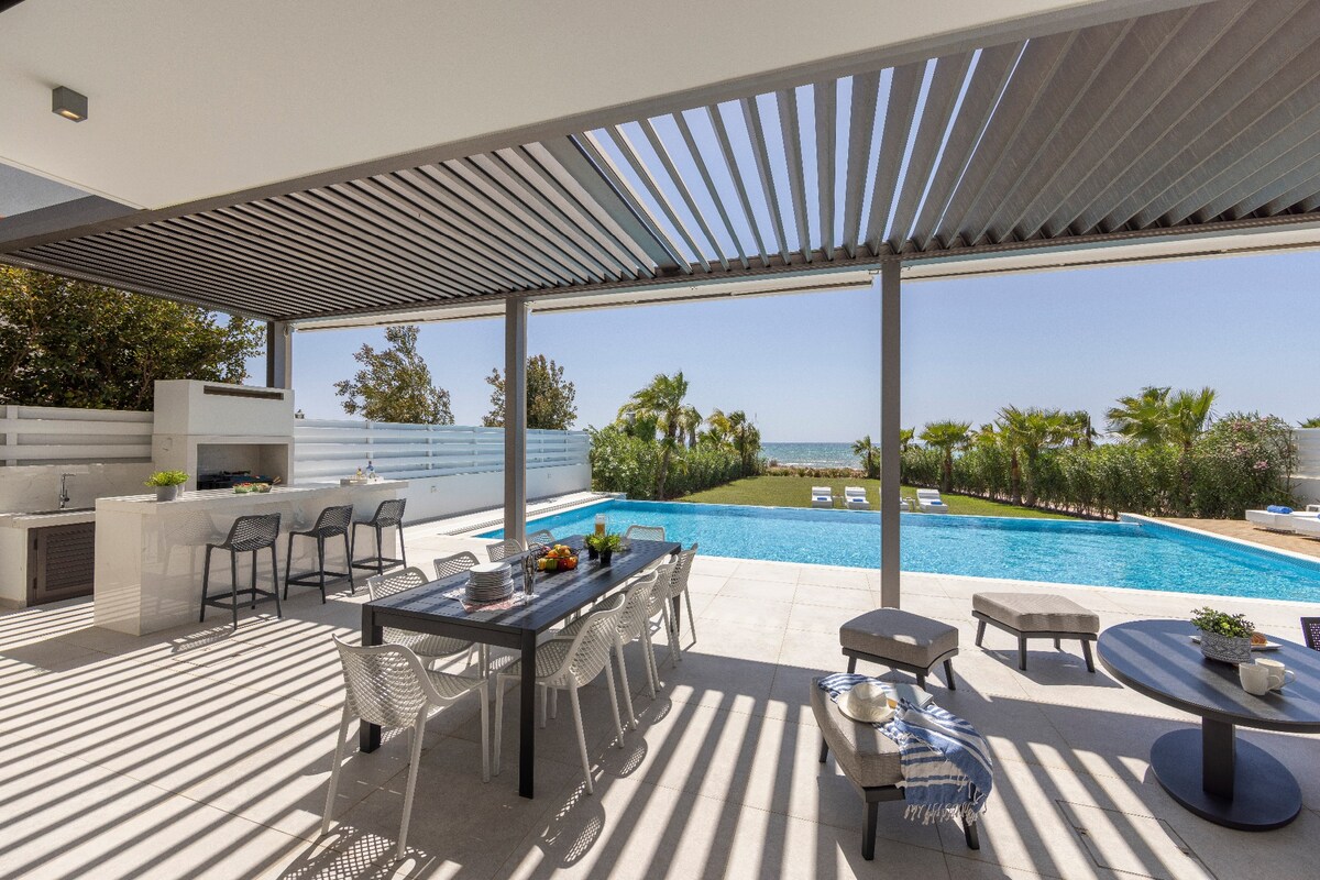 Relájate en nuestra serena y tranquila casa de playa de lujo en compañía de tus personas favoritas. Disfruta de las puestas de sol mediterráneas desde la piscina o mientras te das un chapuzón... y a solo 2 minutos a pie se encuentra la playa de Serena Bay, con su mar tranquilo y cristalino y el galardonado Beach Bar & Restaurant.