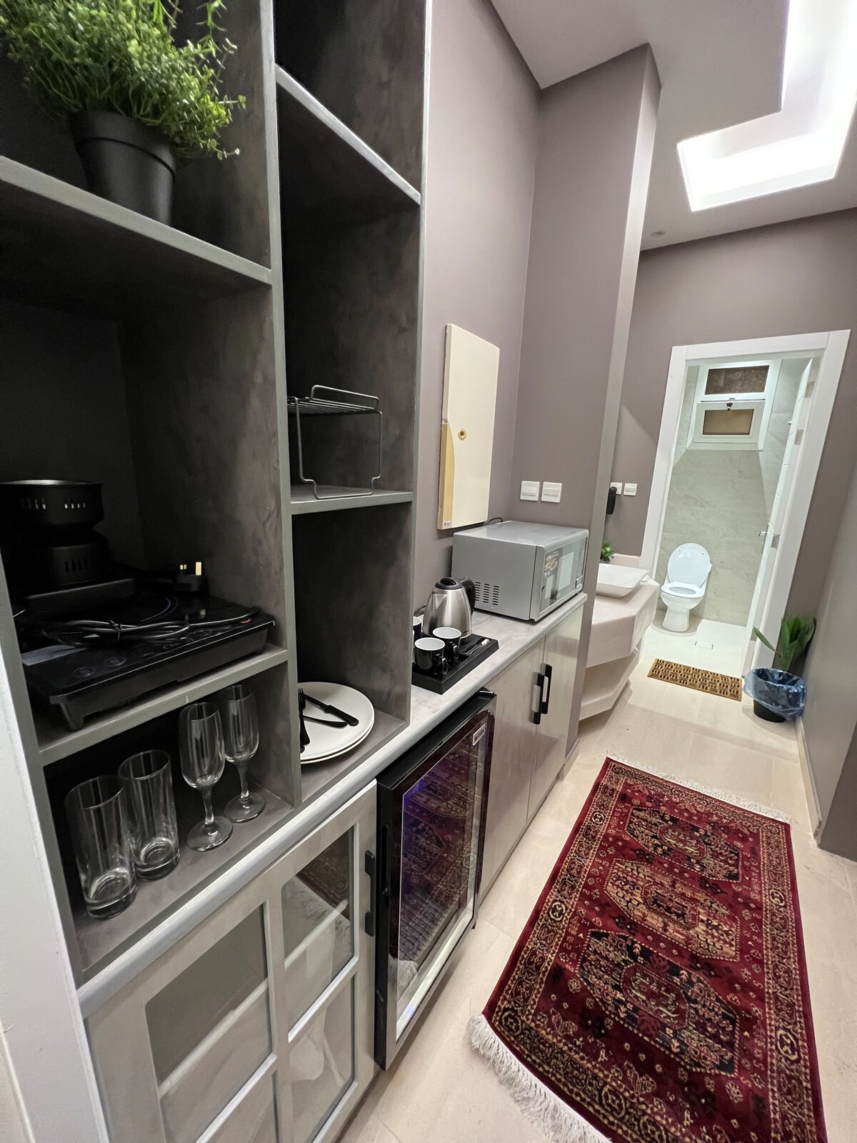 Un estudio tranquilo y elegante con check-in autónomo, que consta de una cama principal, un asiento lateral y un televisor inteligente, además de un rincón de café para hacer café y té, un hervidor de agua y un microondas, y un baño completo con herramientas de ducha. Este estudio está estratégicamente situado en el norte de Riad y está cerca de todos los servicios y eventos. No hay WiFi. Riyadh Boulevard está a 5 minutos Walnder Gunn a 8 minutos , El aeropuerto está a 18 minutos.