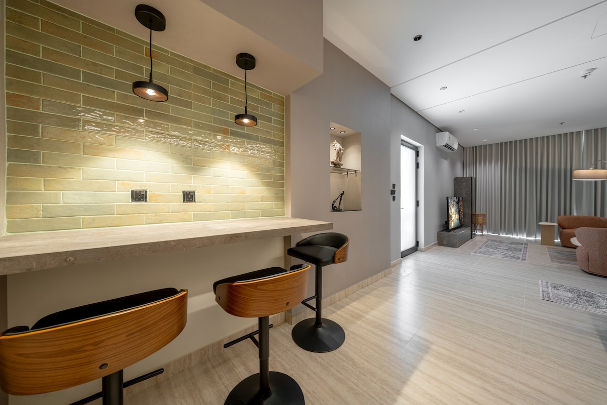 ¿Te apetece una escapada a Riad? Descubre tu oasis privado en este elegante apartamento. Relájate después de explorar la ciudad o acomódate para estadías más largas. Disfruta de un Nespresso fresco y noches cinematográficas en la pantalla de 58”. Ubicado cerca de Boulevard City, Riyadh Park y las principales atracciones. ¿Necesitas productos básicos? Las tiendas y los servicios están a solo unos pasos. ¿Quieres quedarte más tiempo? Envíanos un mensaje para recibir ofertas exclusivas. ¡Tu inolvidable estadía en Riad comienza aquí!