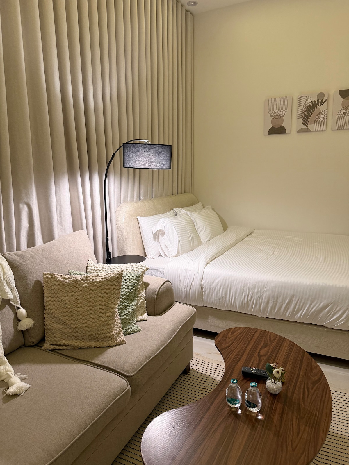 • 📺 Un programa de entretenimiento de lujo que incluye todos los canales deportivos e internacionales. • 🎬 Una plataforma para películas y series de alta calidad • 🌐 Wifi de alta velocidad. • 📺 Pantalla inteligente de 75 pulgadas para una experiencia de visualización cinematográfica. • 🛏️ Dormitorio lujoso con diseño elegante. • 🛌 Cama adicional a pedido por una tarifa • 🌿 Sesión privada al aire libre en un ambiente tranquilo. • ✨ Decoración moderna con elegantes toques de hotel. • 🍽️ Restaurante disponible en el mismo edificio. • ☕ Muy buenos cafés cerca de la ubicación • 📍 Una ubicación estratégica distintiva y de fácil acceso • 🕊️ Privacidad y tranquilidad completas