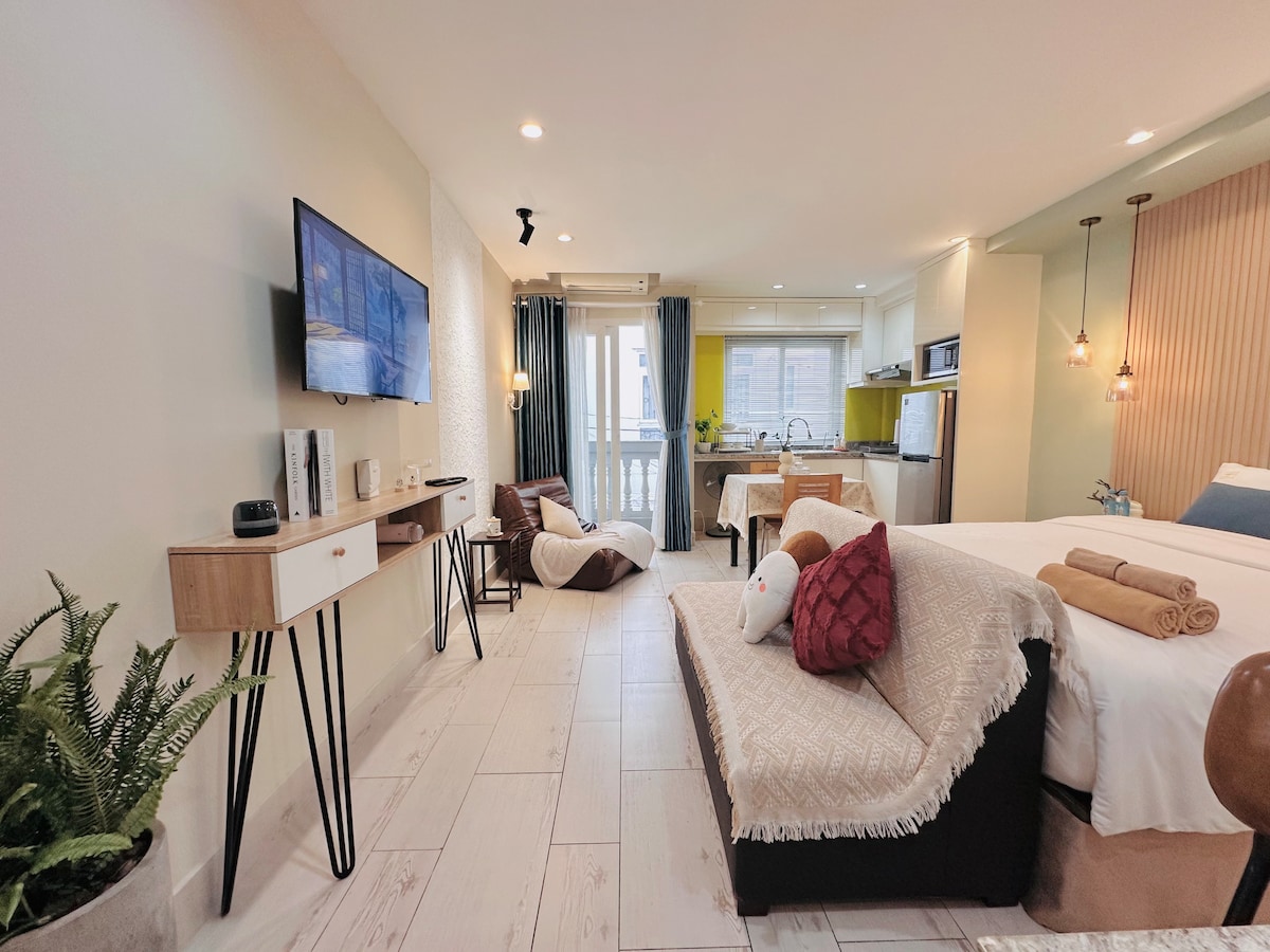 ¿Eres una persona joven a la que le encanta explorar y experimentar? ¿Estás buscando alojamiento en el corazón de la ciudad? Nuestro acogedor apartamento estudio totalmente amueblado está perfectamente ubicado en la bulliciosa calle Bui Vien, lo que te pone en medio de la acción. Explora las principales atracciones de la ciudad y experimenta la vibrante vida nocturna, todo a tu alcance. Nota: Debido a la animada vida nocturna de la calle Bui Vien, es posible que mi estudio no sea adecuado para huéspedes que buscan un refugio tranquilo y pacífico.