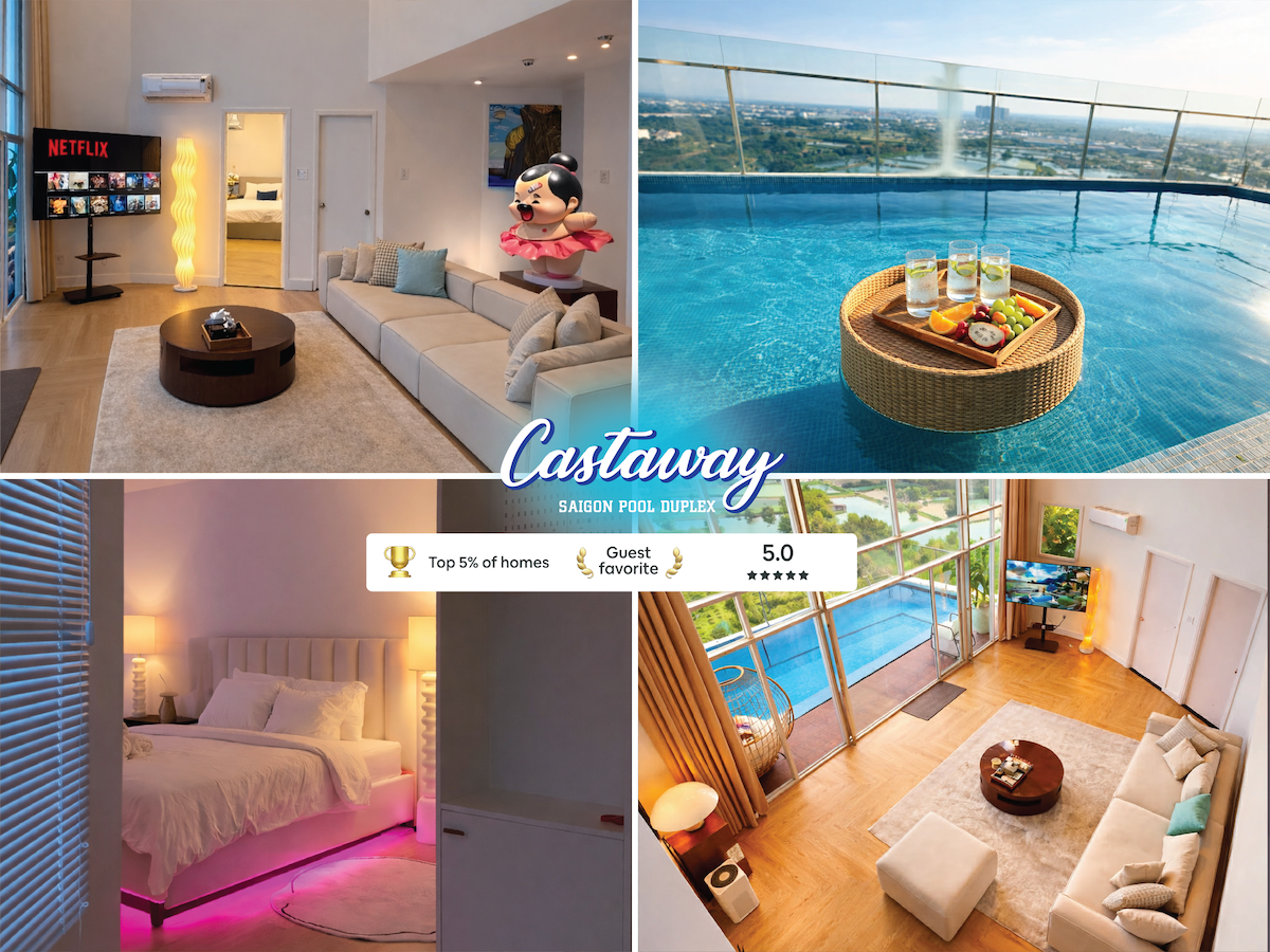 ¡¡GRAN INAUGURACIÓN!!️ Escápate a un santuario elegante de Saigón en este enorme dúplex de 285 m², perfecto para familias y grupos. Sumérgete en tu PISCINA PRIVADA PANORÁMICA con vistas abiertas y sin obstáculos, relájate en el acogedor cine en casa y relájate entre impresionantes decoraciones de muebles de mediados de siglo. Nuestro dúplex fue cuidadosamente diseñado para una verdadera sensación de hogar lejos del hogar, ubicado a solo 20 minutos del vibrante corazón del Distrito 7, una mezcla irresistible de espacio, estilo y valor para tu escapada de AirBnb