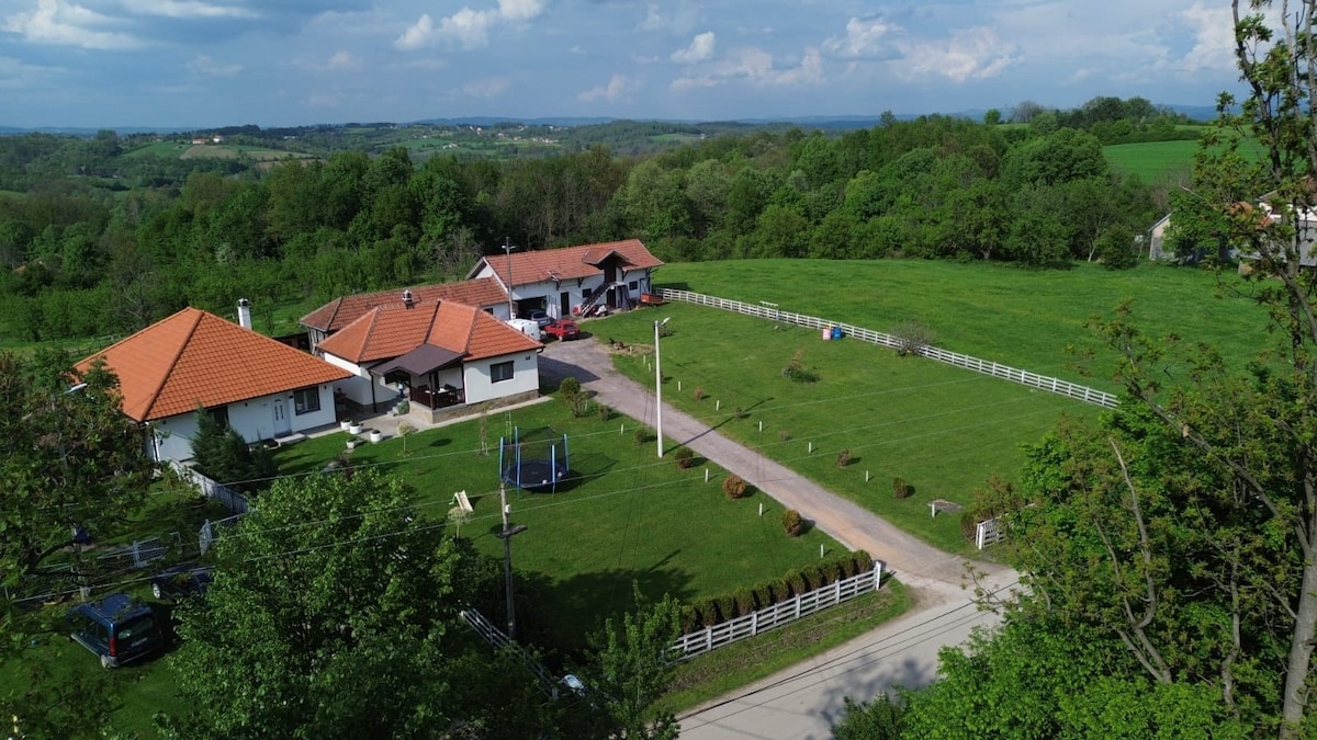 "Ovo seosko domaćinstvo idealno je za porodične odmore i proslave, sa naglaskom na sveobuhvatan sadržaj za sve uzraste. Na imanju se nalaze prostrani travnjaci i igrališta za decu,kao i bazen sa letnjikovcem za organizaciju proslava za razne svečane trenutke, uz mogućnost profesionalne organizacije događaja. Enterijer domaćinstva je pažljivo uređen sa modernim sadržajima i tradicionalnim elementima, pružajući savršen spoj udobnosti i autentičnog seoskog ambijenta."