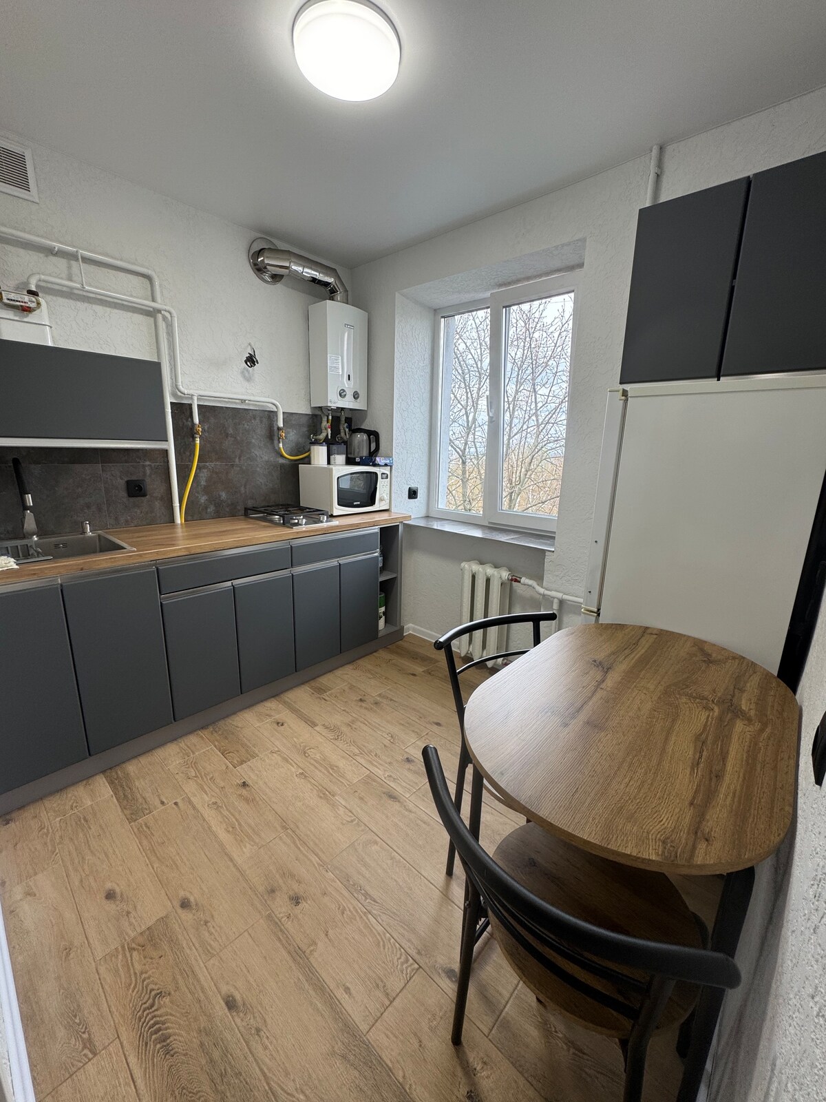 Acogedor, limpio, con nueva renovación. - Al cuarto hospital, hospital — 1,5 km – A 7 km de la estación de autobuses y trenes. – Cerca de ATB, Silpo, Eva, bazar, pizzerías, farmacias, banco – Tranvía 5, minibuses 86, 39 - 5º piso (último, sin ascensor) – Ventana de piso a techo – Cama doble – Sofá cama (3 camas) - Aire acondicionado Agua caliente - TV inteligente, wifi. - Baño, lavadora y secadora. Microondas, hervidor eléctrico, refrigerador - secador de pelo, plancha - Vajilla, té, azúcar. - Ropa de cama y toallas limpias