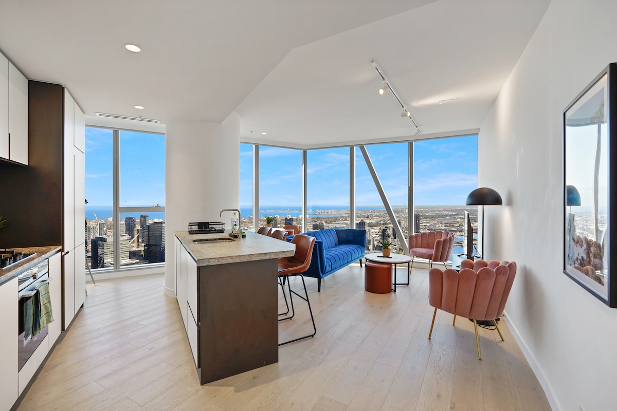 Situado en el último piso de uno de los mejores complejos de apartamentos de Melbourne, este apartamento bien diseñado tiene vistas panorámicas ininterrumpidas que abarcan desde el océano hasta los hermosos Docklands. Con ventanas del suelo al techo en el dormitorio, te despertarás con una de las mejores vistas de Melbourne. Situado en una ubicación conveniente, este apartamento se encuentra a 3 minutos a pie de la estación principal de tren de Melbourne, la estación de Southern Cross, junto con servicios minoristas y tiendas de comestibles.