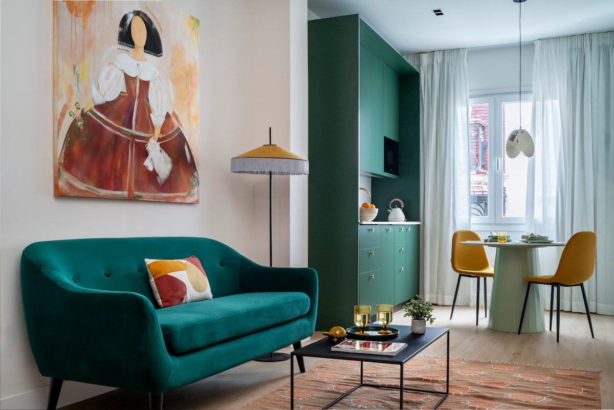 Los espectaculares apartamentos de La Rosa de la Alfalfa están ubicados en el centro histórico sevillano, junto a la Plaza de la Alfalfa. Una extraordinaria localización para descubrir los mayores atractivos de nuestra ciudad. Han sido diseñados para ofrecer el mayor confort a nuestros huéspedes, cuidando todo tipo de detalles que harán de la estancia una experiencia inolvidable. Todos los apartamentos cuentan con un dormitorio, cocina totalmente equipada, un cómodo salón con TV y baño completo.