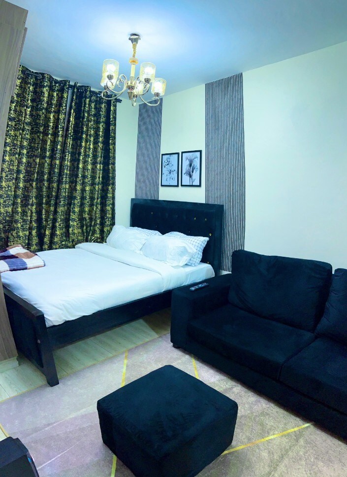 Moderno departamento estudio cerca de JKIA – 4to piso con excelentes vistas | Amana Heights, Fedha Diseñado para comodidad y estadías cortas cerca del aeropuerto, el espacio incluye: 🛏 Cama espaciosa de 5x6 – Suave, cómoda y perfecta para relajarse 📺 Televisor inteligente de 43 pulgadas: disfruta de Netflix de pago, Showmax y aplicaciones de transmisión de fútbol en vivo. 🍳 Cocina con refrigerador y microondas 🚿 Ducha caliente: agua caliente confiable 📶 Wifi de alta velocidad: perfecto para viajeros de negocios y streaming. 🔐 Seguridad 24/7 y estacionamiento gratuito en el sótano