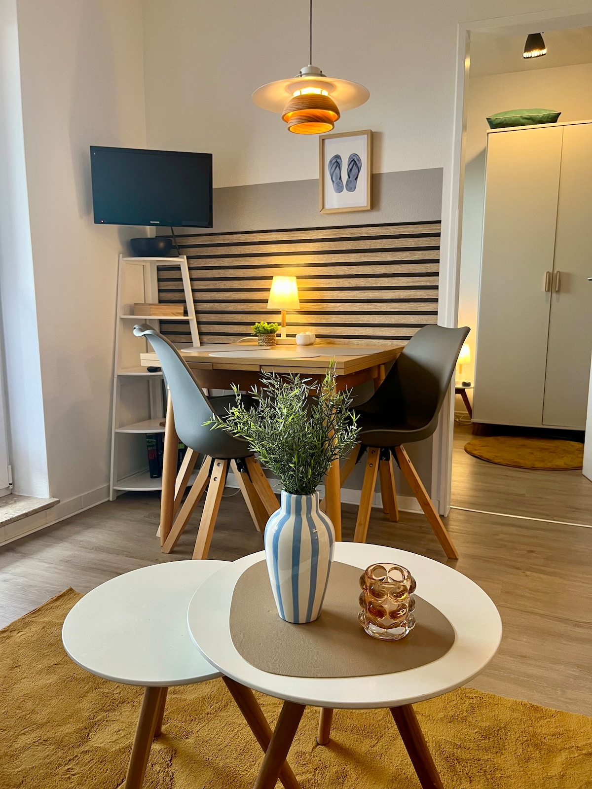 Mit viel Liebe haben wir im Sommer unsere "Krabbenbude" renoviert und uns selber einen gemütlichen Wohntraum erfüllt. Eine moderne offene Küche lädt mit viel Zubehör zum Kochen ein. Beide Schlafzimmer sind mit Boxspringbetten ausgestattet - für gehobenen Schlafcomfort. Der große und gemütliche Wohn-Essbereich mit elektrischem Kamin, bietet ausreichend Platz für die ganze Familie. Glasfaser steht euch ebenfalls kostenlos zur Verfügung. Einen Hund dürft ihr nach Absprache gerne mitbringen