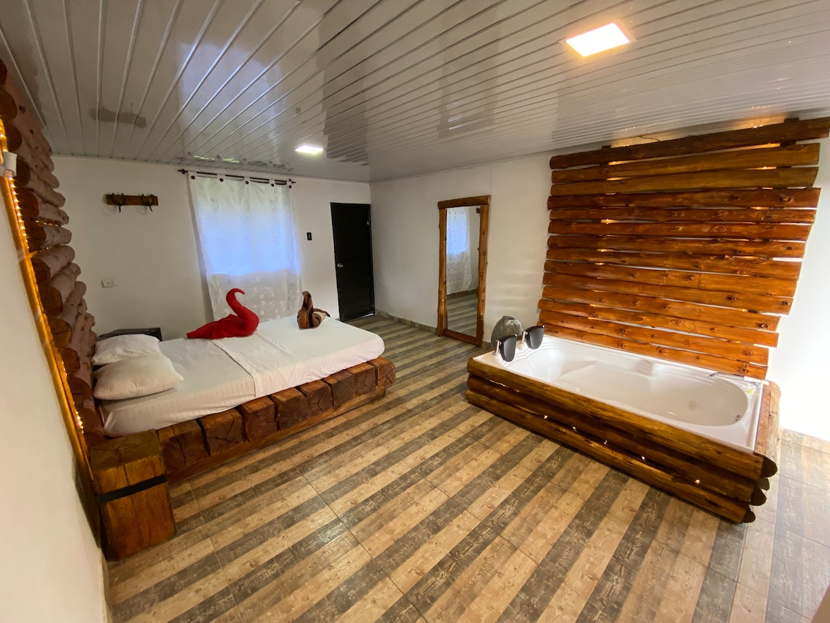 Relájate en un espacio excepcional para descansar, disfruta del sonido del río 🍃, la visita de aves 🛁💆🏻♀️💆🏻♂️🦜🐦⬛ y el aire fresco, nuestros hermoso ambiente cuenta con un jacuzzi privado el cual dará lugar a una experiencia unica, estamos ubicados a 1 km antes de termales Santa Rosa ingresando 1,2 km a la izquierda, frente a la chiva del café ☕️ , en la vía encontrarás restaurantes de comida típica, miradores y demás.