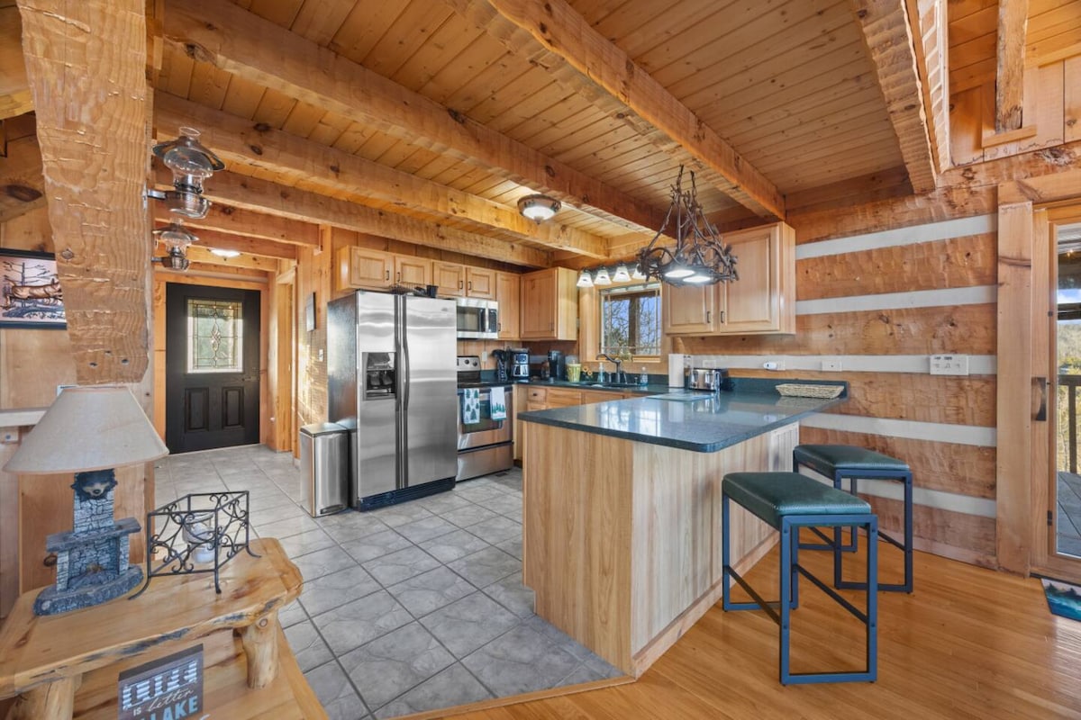 Hatties Lake Retreat en Sevierville, TN, ofrece impresionantes vistas al lago y las montañas. Esta espaciosa casa cuenta con 4 dormitorios, incluidas 2 suites principales con camas tamaño king y áreas para dormir adicionales con camas tamaño queen y literas. Disfruta de una sala de estar y comedor de concepto abierto, una mesa de billar, un bar y espacios adicionales para relajarte. Con características accesibles y hermosos paisajes, es perfecto para familias y grupos que buscan una escapada cómoda. ¡Ubicado cerca de atracciones y actividades al aire libre!