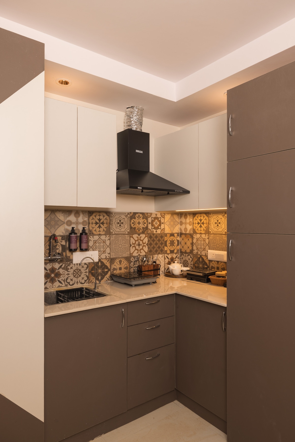 Te damos la bienvenida a Calista Nest, un refinado estudio boutique ubicado en un pueblo urbano del norte de Delhi. Diseñado cuidadosamente con interiores de estilo neoclásico, el espacio combina la elegancia con el confort moderno. Este estudio cuidadosamente decorado ofrece una estancia acogedora, elegante y tranquila, perfecta para huéspedes que buscan un refugio con encanto y, al mismo tiempo, estar en contacto con la vibrante vida de la ciudad.
