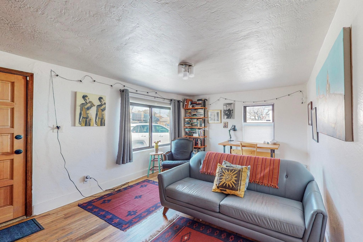 ¡Te damos la bienvenida a Writers House! ¡Una casa con aprecio por la literatura! ¡Perfecto para parejas o amigos que buscan escapadas o personas que trabajan y visitan Nuevo México! Estamos en el centro y a pocos minutos a pie del histórico casco antiguo, el mercado de comida artesanal Sawmill Market, el parque Tiguex y muchos museos para adultos y niños. Después de un día de exploración, llama a este lugar tu hogar lejos de casa con todas las comodidades básicas que puedas necesitar y un bonito patio trasero para disfrutar del aire fresco de Nuevo México.