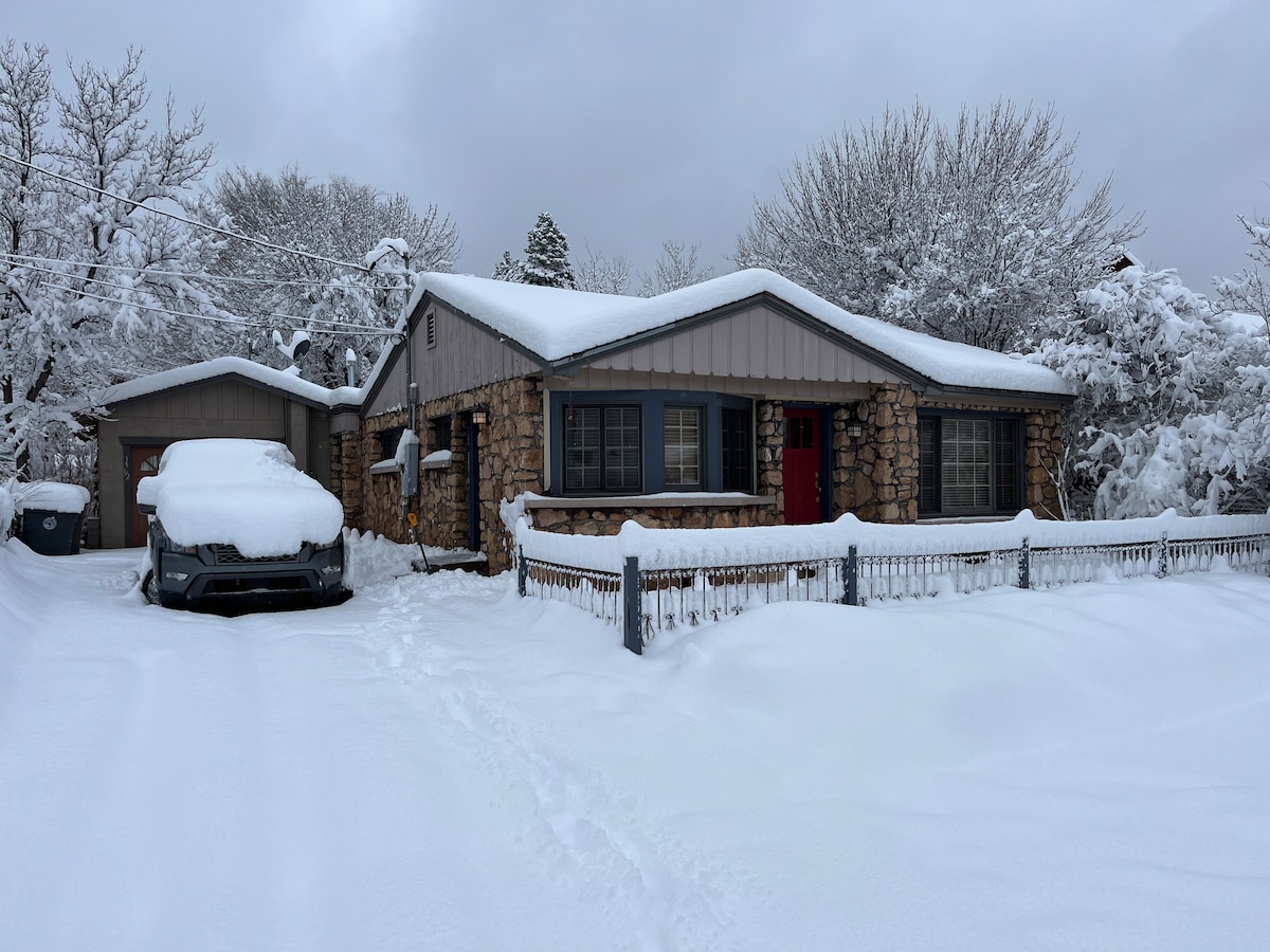 Bungalow remodelado de 2 dormitorios y 2 baños en el centro de la ciudad, en el extremo oeste del centro histórico de Flagstaff, Ruta 66, a 1/2 milla de la tienda de comestibles Basha's (10 minutos a pie), NAU a 3/4 milla (15 minutos a pie) de NAU y el Centro Médico Flagstaff. Armarios Shaker, encimeras de granito, electrodomésticos rojo cereza. Patio totalmente vallado con barbacoa de carbón, mesa de pícnic, sillas Adirondack y chimenea. Televisores inteligentes en la sala de estar y dormitorios con wifi de alta velocidad. Lavadora/secadora de tamaño completo. Aparcamiento para un coche al lado de la casa.