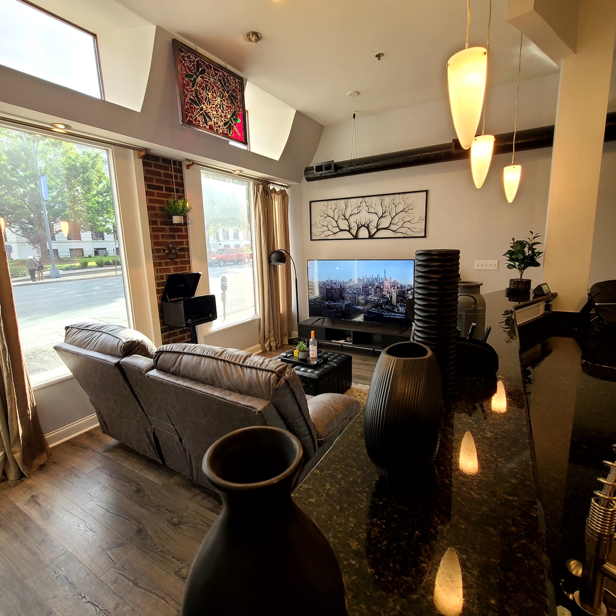 ¡Encantador apartamento en el corazón del centro de Greensboro! Camina a todas partes: tiendas, museos, Tanger Center, parques, tiendas de comestibles, cafeterías, restaurantes, bares y mucho más. A poca distancia a pie de UNC Greensboro, NC A&T y Elon Law. Smart TV de 55 pulgadas. Todas las comodidades, incluida lavadora, secadora, lavavajillas y microondas. Se proporcionan cafés, tés, agua filtrada y aperitivos. Ropa de cama, toallas y sábanas. Tanto si te gusta la vida nocturna, como pasear por el parque o probar nuevos restaurantes, ¡el centro de Greensboro lo tiene todo!