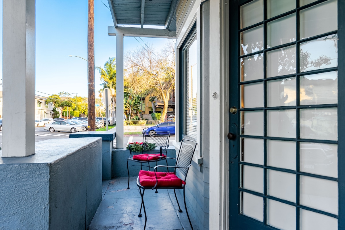 Disfruta de este apartamento privado, cuidadosamente rediseñado y acogedor en el segundo piso. Estamos en una ubicación inmejorable en el corazón de Retro Row en Long Beach. ¡Este dormitorio es perfecto para una escapada, trabajar desde casa o relajarse! Una sala de estar luminosa y cómoda con aire acondicionado de ventana para mantener las cosas frescas y un sofá cama para uno. Algunos servicios: * Entrada privada con código de llave * Cocina completa y lavandería. * Wifi rápido. * 1/2 milla de la playa * ¡A pasos de las tiendas de la calle 4, restaurantes de moda, etc.!