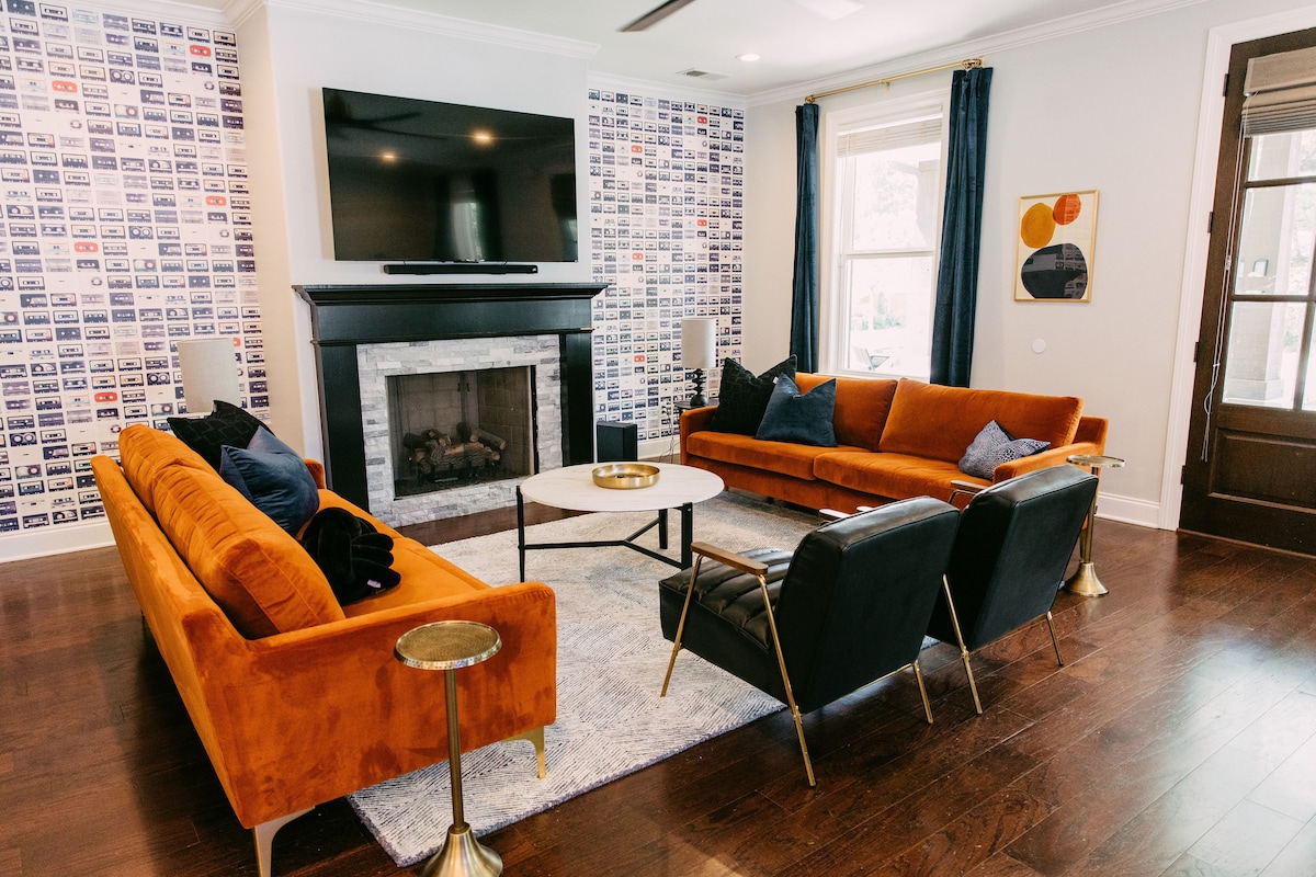 ¡Casa de juegos retro en Memphis! ¡Minigolf, chimenea!