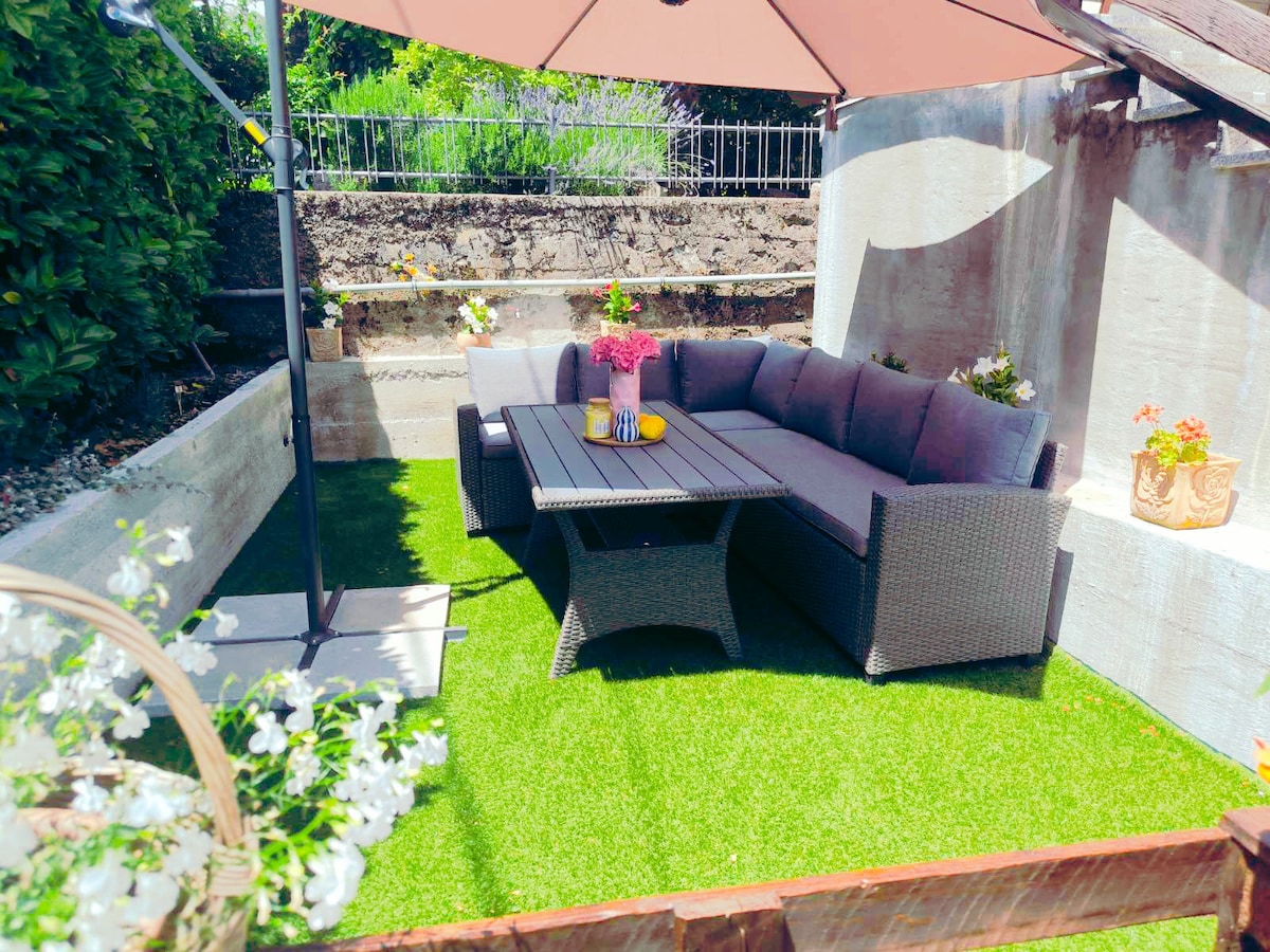 Estudio elegante y acogedor con jardín mediterráneo