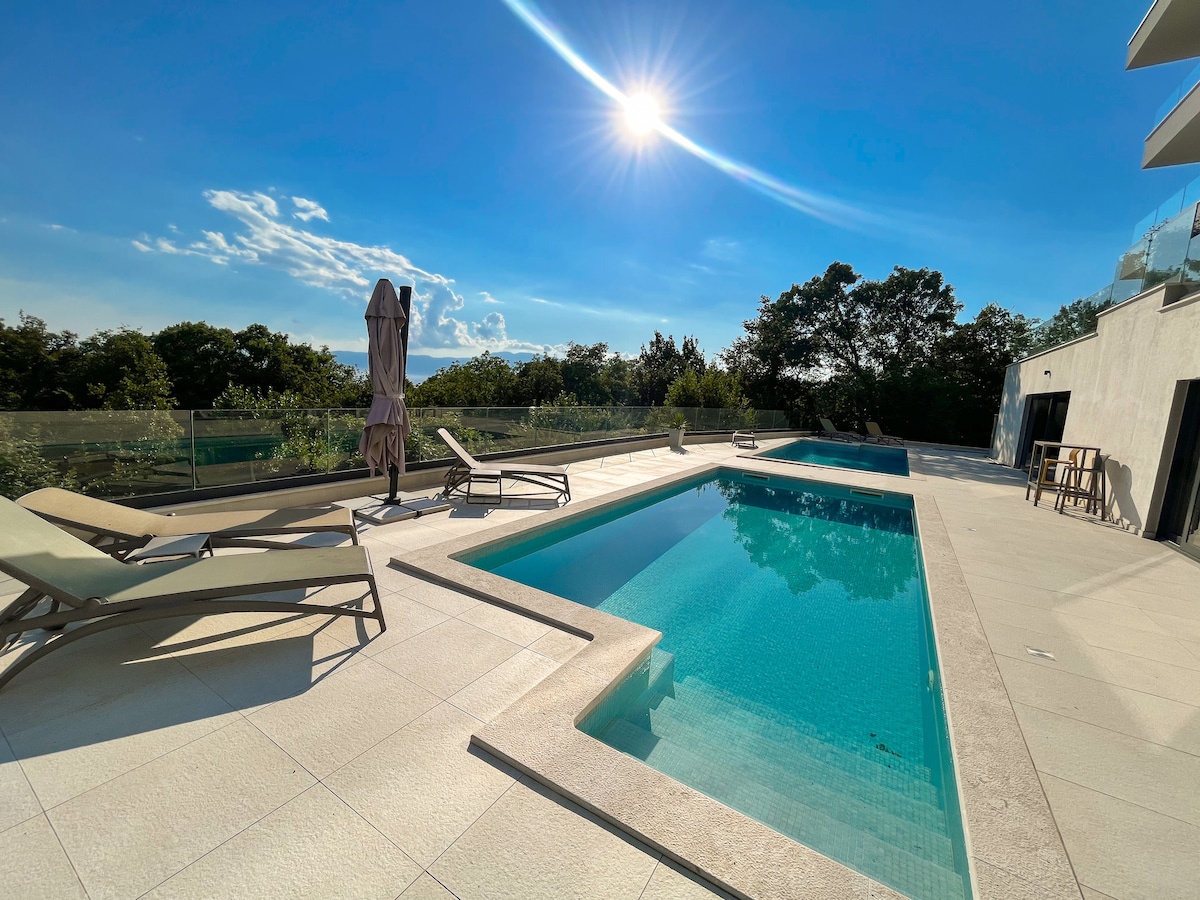 Penthouse escondido en la cima de una colina, con impresionantes vistas al mar y una serena zona de jardín sombreada con espacio para descansar. Aparcamiento privado y a 15 minutos a pie de la playa de arena. Televisor OLED Ambilight de☞ 43 pulgadas con Netflix. ☞ Dos elegantes baños con ducha de lujo. Wifi ☞ muy rápido de 500 Mb/s. Salón de lujo al aire☞ libre. Zona de estar en el patio☞ trasero con ambiente especial por la noche. A ☞ menos de 15 minutos a pie de la playa y de la ciudad. Envíanos un mensaje, ¡nos encantaría saber tu opinión! O visita: @hideaway_crikvenica