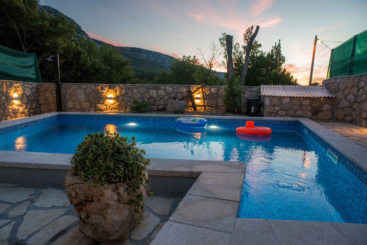 Villa de piedra con piscina