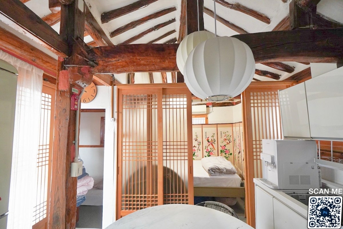 🌿 Un tranquilo refugio Hanok en el corazón de la ciudad, donde la naturaleza se encuentra con la comodidad Este hanok coreano tradicional bellamente restaurado combina el encanto atemporal con el confort moderno. Aunque está convenientemente ubicado en la ciudad, el alojamiento se encuentra junto a una pequeña montaña y cuenta con un amplio patio privado, lo que te permite disfrutar tanto de la comodidad urbana como de la tranquilidad natural al mismo tiempo.