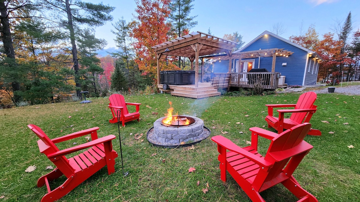 Escape to Chalet Buckingham, a stunning four-season retreat nestled on 3 acres of Ottawa River waterfront. Located just 45 minutes from Ottawa and 5 minutes from the Quyon ferry, this serene getaway is easily accessible and offers a peaceful escape from the city. Enjoy small boats and water toys in summer, cook in the large outdoor kitchen with BBQ + pizza oven, and unwind in the sheltered 8-person hot tub available year-round. Experience tranquility and adventure in one perfect destination.