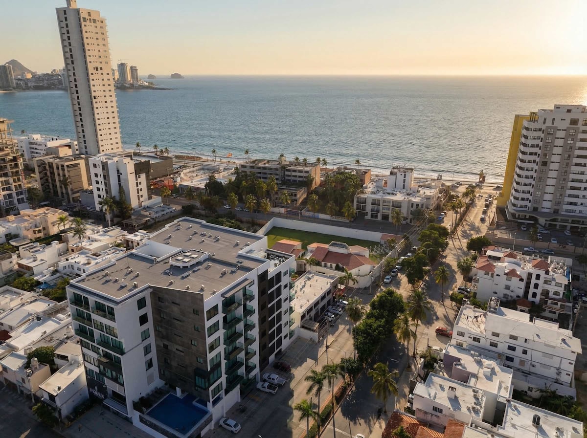 Descubre Mazatlán desde Makeva, un condominio moderno ubicado en una de las zonas más céntricas y bien conectadas de la ciudad. A solo una cuadra del mar, este departamento combina comodidad, diseño contemporáneo y una ubicación ideal para disfrutar tanto la playa como la vida urbana. Desde aquí, moverte por Mazatlán es sencillo y natural.
