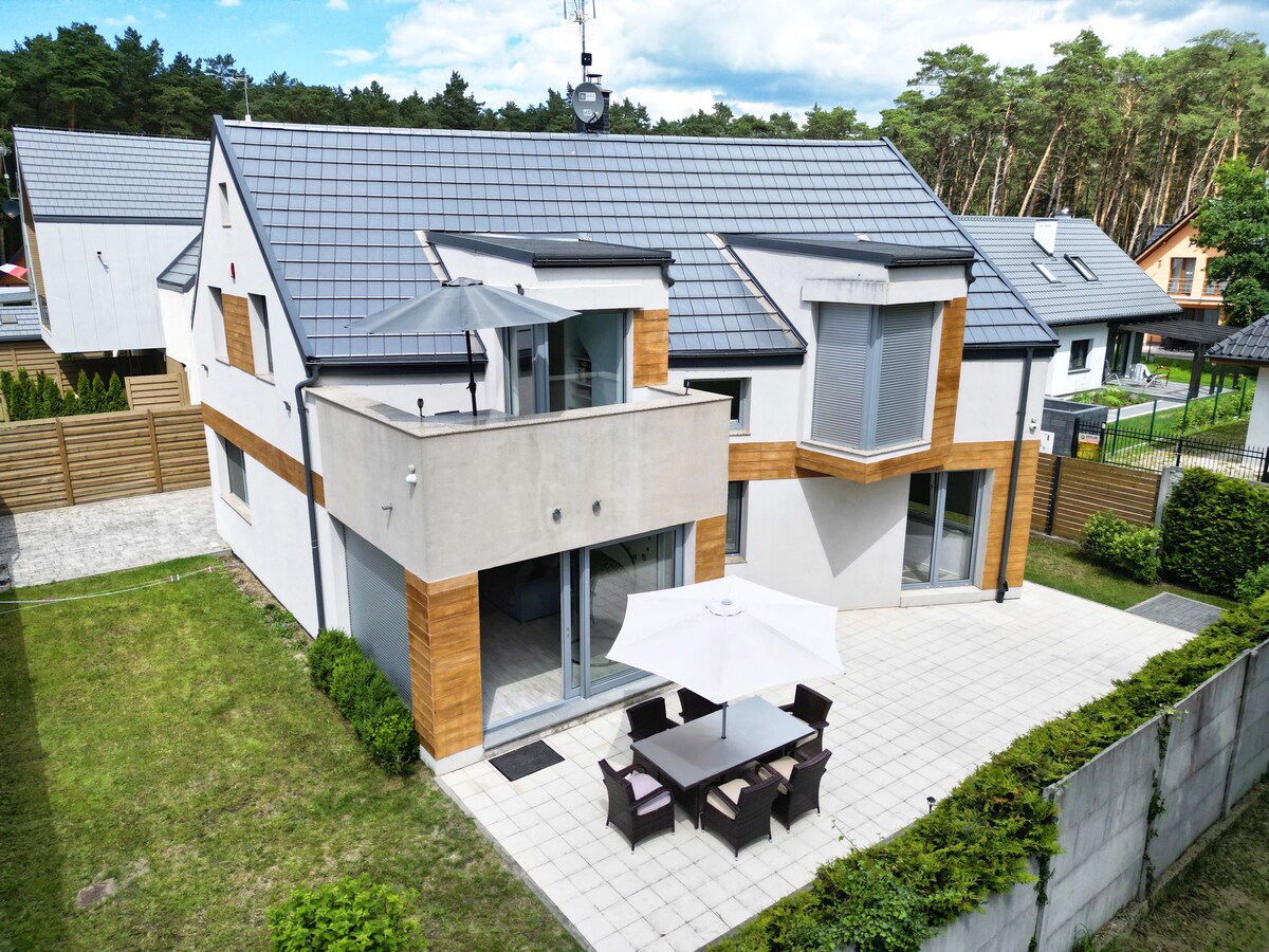 Esta es una hermosa casa de vacaciones de lujo de 175 metros cuadrados construida en 2016 en una parcela vallada de 900 metros cuadrados. Se encuentra en la isla de WOLIN (costa báltica occidental polaca), a 10 km al este de Miedzyzdroje. Aquí encontrarás una tranquilidad absoluta. La casa se encuentra a 50 metros del Parque Nacional de Wolin (un gran bosque) y a 1,2 km a través de este bosque hasta la playa. La playa en sí: playa de arena blanca, ancha, larga. En la casa hay una chimenea, sauna y 5 dormitorios (4 x cama doble + 1 habitación con 2 literas para niños).