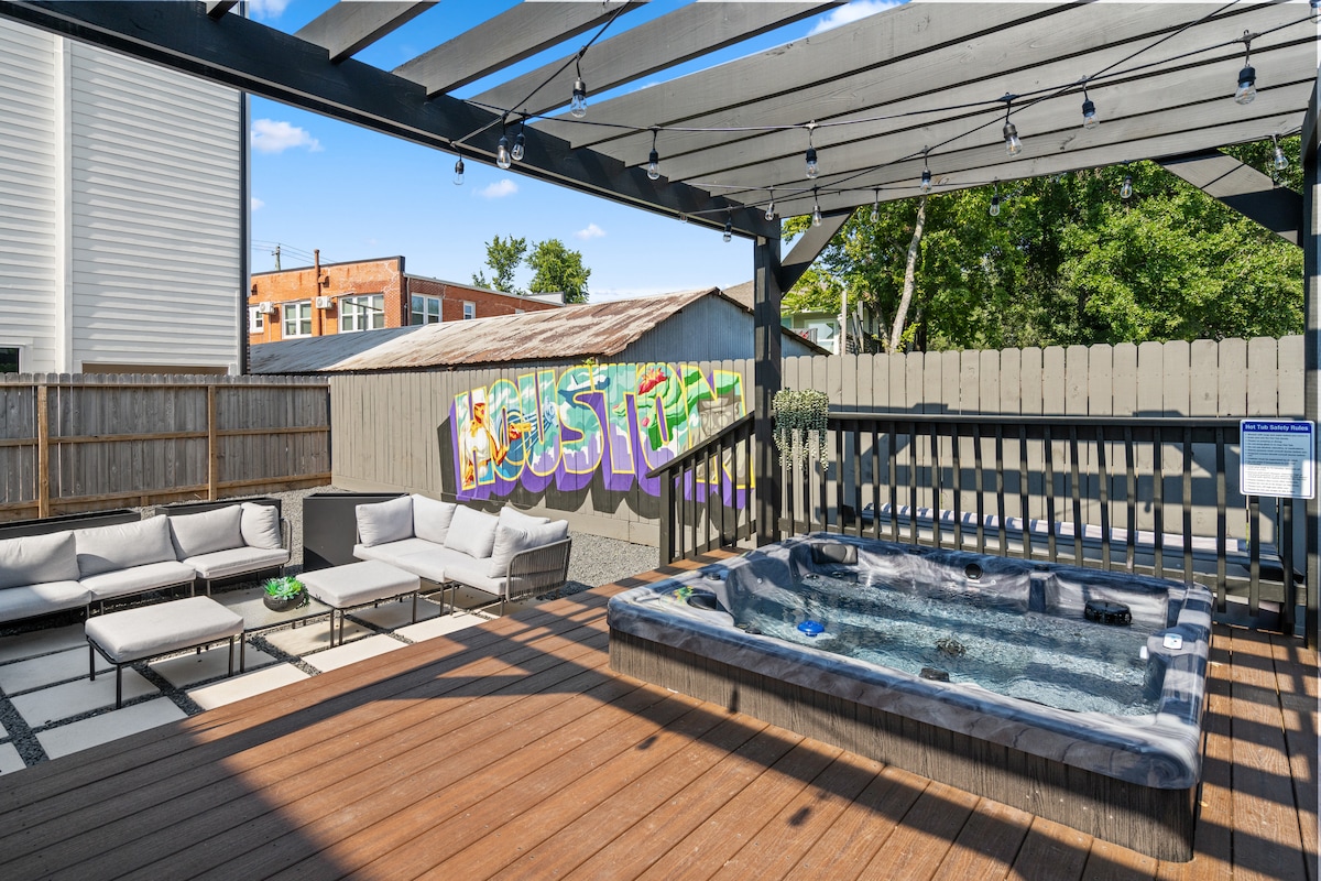 Experience Houston from this stylish 3-story Midtown townhouse, perfect for families and groups. This 3 bed/3 bath home comfortably sleeps 6 and features a private hot tub and dedicated workspace. Enjoy a fully equipped kitchen and a private patio with a grill. Located in vibrant Midtown, you're just minutes from Downtown, the Museum District, MD Anderson and top restaurants. Walk to everything or use the 2-car garage. A perfect urban retreat with high-end amenities for a memorable stay.