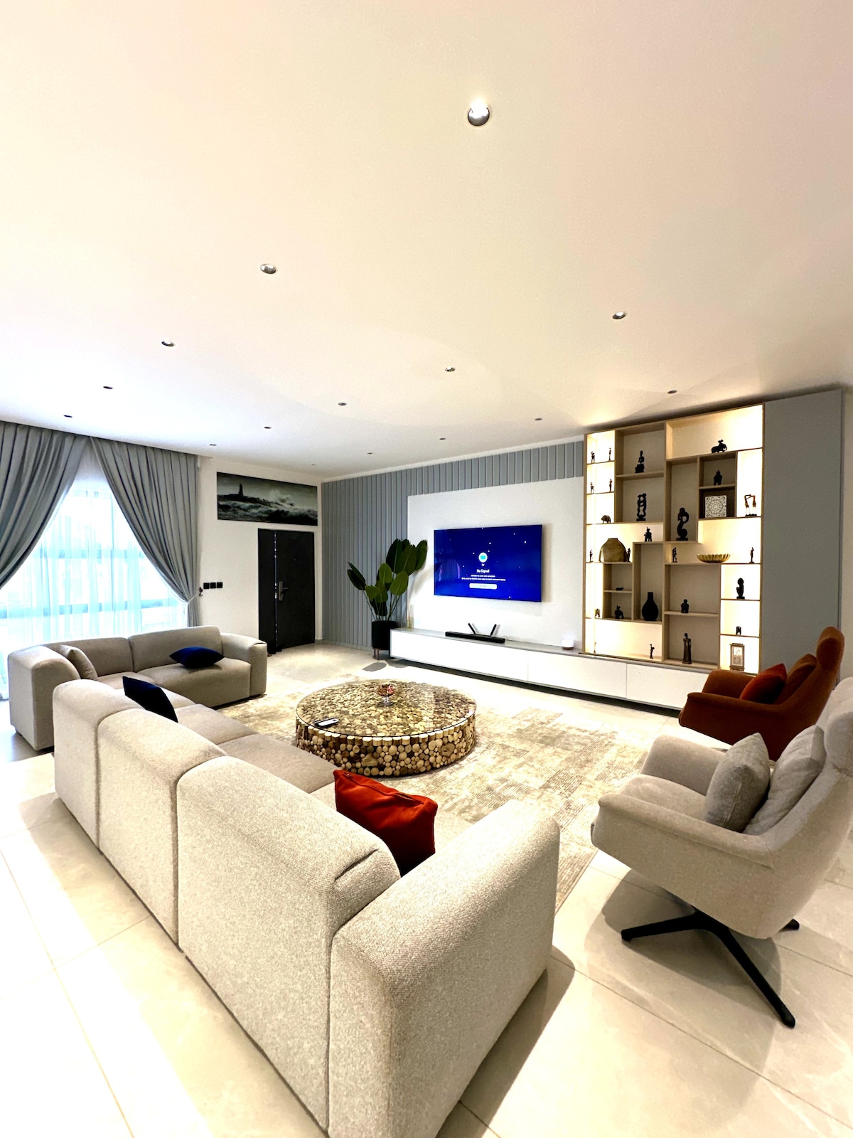 ☞ Private Pool (3.5 ft. shallow end, 6.5 ft. deep end, 10x23 pool) 🏊 ☞ Starlink 250+ Mbps WiFi ✭ Cozy King Size Bed (180x200 cm) 🛏️ ✭ Private Lux 7-seater SUV w/ chauffeur 🚘 ✭ Daily Cleaning available 🧹 ☞ Backup Generator for 24/7 Power ☞ 3850 sq. ft home ☞ 5 Smart TVs w/ Netflix DSTV & Local Channels (largest is 75 inches) ☞ Parking (onsite, 4 cars) ☞ Washer + Dryer ☞ Samsung 11.1.4 Surround Sound Bluetooth speakers ☞ Fully equipped + stocked kitchen ☞ A/C 》25 - 30 mins to the airport