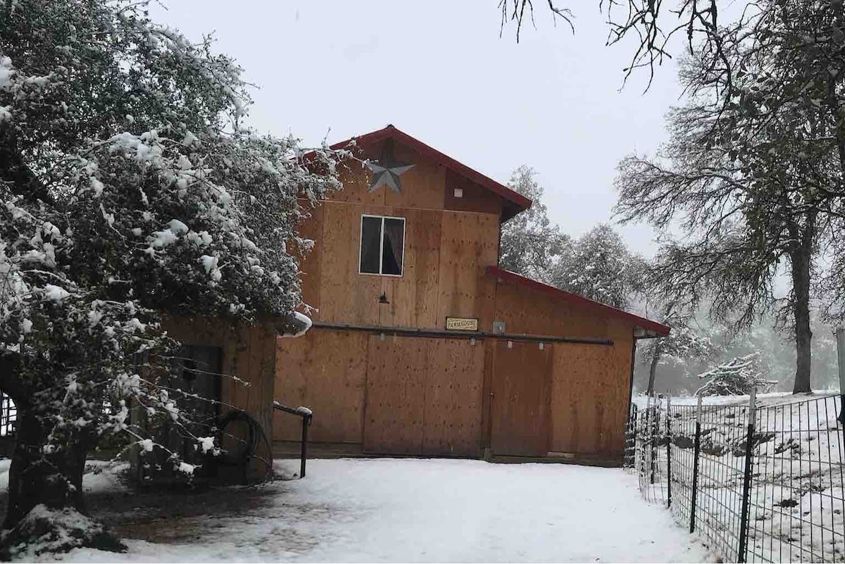 ¡Este granero grande en 40 acres es tu escapada perfecta! acogedora chimenea en la sala de estar. Aire acondicionado/calefacción en las habitaciones. Hermosa vista, ¡la ducha de piedra única es un placer para dos! Jacuzzi disponible 3 estaciones, pero no en invierno. ¡El senderismo es una de las actividades favoritas, así como amar a nuestros cerdos y caballos rescatados! :) dormir: 2 camas dbl. litera individual y 2 cunas Disfruta de una romántica contemplación de las estrellas en el patio. Juego con futbolín. La sala de estar tiene un televisor de pantalla grande para DVD. Con wifi. 10 minutos al río o al lago.