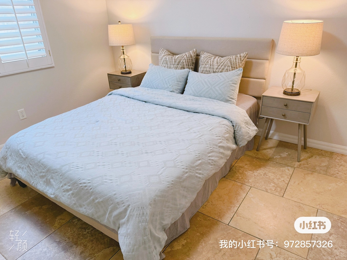 Esta es una casa nueva con entrada independiente, que puede proteger a cada huésped que vive aquí de ser molestado por otros huéspedes. 1 cama tamaño king, 1 sofá cama , un aire acondicionado central controlado de forma independiente y muebles y suministros nuevos. El parque está a poca distancia caminando。 Costco, los supermercados y los restaurantes están por todas partes