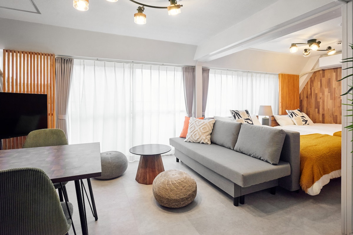 Este apartamento estudio totalmente privado de 26 m² está idealmente ubicado a solo 7 minutos a pie de la estación de Ebisu y a solo 3 minutos en tren de Shibuya. La habitación ofrece un ambiente tranquilo y cómodo, amueblado con una cama doble y un sofá cama. Se proporciona un televisor inteligente con Netflix y wifi confiable, lo que lo hace adecuado no solo para hacer turismo, sino también para trabajar a distancia y para estancias más largas.