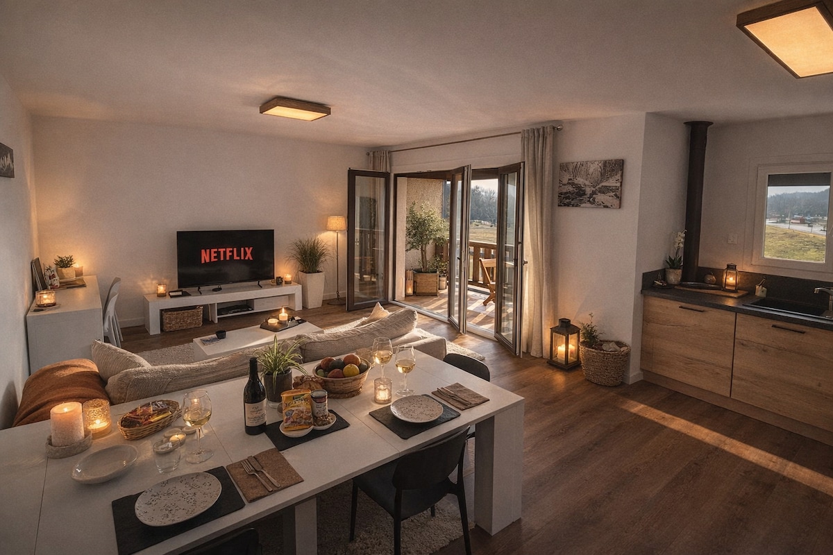 🏡Apartamento luminoso con vistas despejadas al Jura🏔, perfectamente organizado para una estadía corta o larga Smart TV y Netflix, Box Pro para teletrabajo, a 15 minutos de Ginebra y al pie de las pistas de la estación de Monts-Jura🎿 Ideal para fronterizos, deportistas, excursionistas, parejas, familias, esquiadores, bicicletas o bicicletas de montaña a 5' de la estación. Estacionamiento para automóviles y motocicletas + garaje para bicicletas Parada de autobús al salir del apartamento pero se recomienda coche Cerca del CERN y del aeropuerto de Ginebra